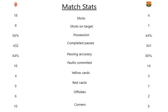 Monaco got 6 offsides, while Barça got 2. And surprisingly Monaco got 10 corners meanwhile, by the other side Barça got 0.