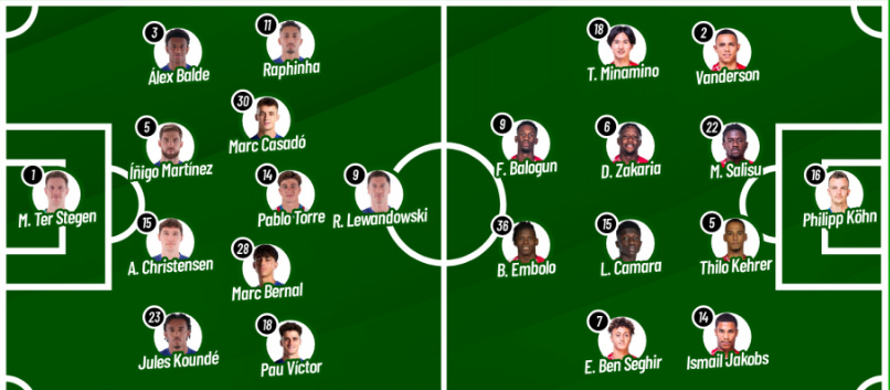 I think, that Barça’s alignation is a little bit incomplete, because they would need one more forwad, because they only have Lewandowski, and they have to many midfields. Monaco’s alignation for me is good.