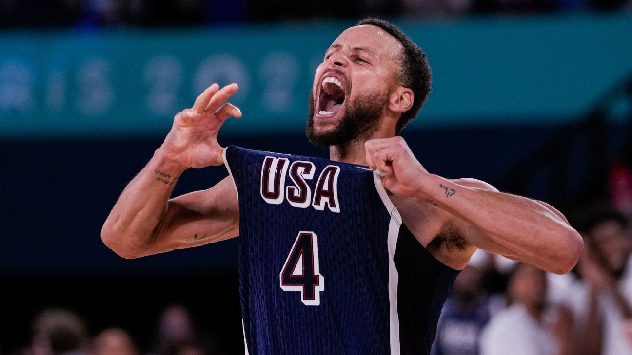 Curry is waking up from nap time, now he’s on 4/8 triples France gets anxious and asks for time out.