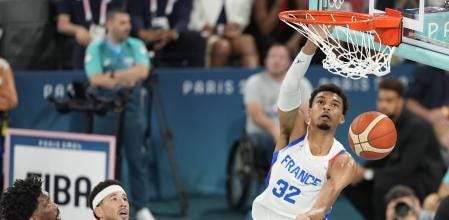 The two teams are prepared. French players: Batum, Cordinier, Wembanyama, Yabusele and Ntilikina.