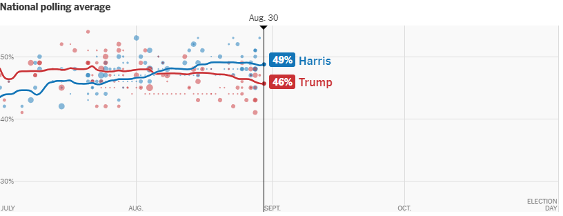 As you can see right here this are the polls of Harris and Trump. Harris winning with a 49% and Trump loses with a 46%.
